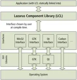 Lazarus obsahuje různé komponenty z různých oborů. Rámec práce s komponentami se nazývá Lazarus Component Library (LCL) – analogicky podle Visual Component Library (VCL), jen dostupné i pro jiné platformy než Microsoft Windows. Rozdíl mezi je v tom, že LCL drží widgety ve skupinách (widget set), s kterými dané widgety komunikují prostřednictvím ad hoc rozhraní.