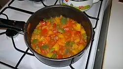 Základem tohoto teplého pokrmu je paprika, rajčata a cibule. Připravuje se především v létě, kdy je dostatek ingrediencí.[1]