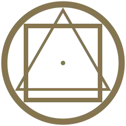 „Kříž s růží v průsečíku“ ve zlaté barvě[34], je základní symbol používaný v chrámech školy. Symbolizuje protnutí dvou řádů, dvou energií - dolů směřující energie se ve středu kříže, ale také symbolicky v srdci člověka, protíná s horizontální energií tedy s materiálním světem. Je to symbol propojení dvou přírodních řádů, ve kterém jde o propojení obou světů v srdci člověka. [35]