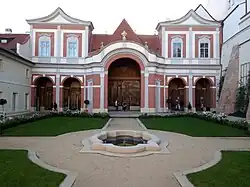 ![]() Ledeburská zahrada - spodní terasa (parter) s fontánou a salou terrenou | |