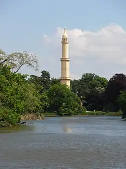 Součástí zámku je pravidelná zahrada francouzsko-italského typu se skleníkem a rozsáhlý krajinářský park typu anglického s unikátní sbírkou stromů a četnými romantickými stavbami, z nichž nejvíce vyniká Minaret, ojedinělá architektonická památka vystavěná podle projektu Josefa Hardmutha v letech 1797–1804. Jedná se o jediný dochovaný příklad maurské architektury v Česku.[7] Na začátku 19. století byl před zámkem vyhlouben rybník, ve kterém bylo navršeno 16 ostrovů, některé jsou propojeny mosty. Park obsahuje zhruba 500 druhů rostlin. Zahrada v Lednici je domovem celé řady druhů vodního ptactva, na jaře zde hnízdí několik desítek párů čápů.