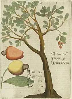 Fosílie rodu Anacardium třetihorního stáří jsou známy zejména ze Severní a Jižní Ameriky a pocházejí z období eocénu. Z Texasu byl popsán druh Anacardium kirnii, z Peru Anacardium peruvianum, z Kolumbie Anacardium eocenicum. Do Jižní Ameriky se rod dostal ze Severní Ameriky pravděpodobně v pozdním eocénu. Velkým překvapením byl nález fosilních pozůstatků tohoto rodu v Messelu v Německu, publikovaný v roce 2007. Druh byl nazván Anacardium germanicum a byl nalezen v jezerních uloženinách ze středního eocénu z doby asi před 47 milióny let. Výskyt v Evropě i Americe v období raných třetihor svědčí o přechodu přes pevninský most, který v tomto teplém období oba kontinenty spojoval přes Grónsko. V Evropě následně rod vymřel pravděpodobně při ochlazení na přelomu třetihor a čtvrtohor.[8][9]
