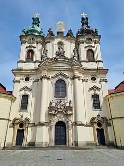 Teprve v roce 1703 získali majetek zpět benediktini z Břevnovsko-broumovského kláštera za podpory císaře Leopolda I. Habsburského. Břevnovský opat Otmar Zinke zde potřeboval vybudovat velké katolické sídlo jako protiváhu protestantské Lehnice. Objednal plány na novostavby kostela a kláštera. Po vleklém odporu vratislavského biskupa Františka Ludvíka, palatina z Neuburgu, opat Zinke položil základní kámen 15. června roku 1719, ale první stavební práce nového kláštera podle plánů Kiliána Ignáce Dientzenhofera mohly být zahájeny až po ukončení sporu roku 1723[1].