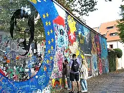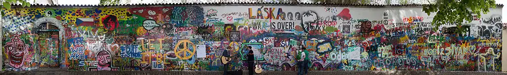 - ↑ BENEŠOVÁ, Stanislava. FOTO: Lennonova zeď v novém. Na jejím přemalování se podílely tři desítky evropských umělců. Novinky.cz [online]. Borgis, 2022-05-08 [cit. 2022-10-31]. Dostupné online.