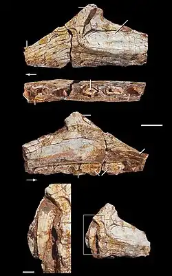 - ↑ Nesbitt, S. J. and Ezcurra, M. D. (2015). The early fossil record of dinosaurs in North America: A new neotheropod from the base of the Upper Triassic Dockum Group of Texas. Acta Palaeontologica Polonica 60(3): 513-526. doi: 10.4202/app.00143.2014