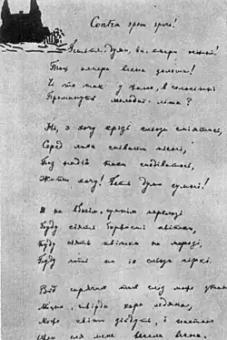 - ↑ BIDA, Constantine. Drama. In: BIDA, Constantine. Lesya Ukrainka. Toronto: University of Toronto Press, 1968b. S. 43–44. (anglicky)