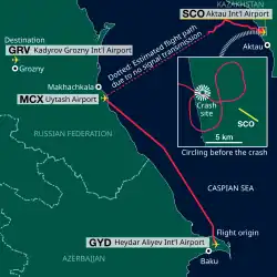 - ↑ Chronology of the Azerbaijan Airlines plane crash near Aktau. en.inform.kz [online]. 2024-12-26 [cit. 2024-12-27]. Dostupné online. (anglicky)