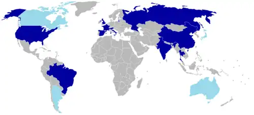 Kromě USA, Francie, Spojeného království, Brazílie, Číny, Ruska a Indie, které mají velké letadlové lodě, jsou letadlové lodě ostatních států menší a jsou vybaveny jen letouny typu V/STOL, obvykle tedy jen vrtulníky, nebo kolmo startujícími Harriery (pokud je letová paluba ohnivzdorná).