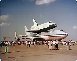 - ↑ A graphic history of 35 years of space shuttle ferry flights now adorns the upper forward fuselage of NASA Shuttle Carrier Aircraft 905. Dostupné online Archivováno 25. 7. 2012 na Wayback Machine.. NASA / Tony Landis