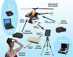 Model letadla nebo vrtulníku je vybaven digitálním (případně klasickým) fotoaparátem, speciálními přijímači a vysílačem video-obrazu z paluby modelu. Pomocí dálkového ovládání je ze země model pilotem naveden do požadovaného místa. Fotograf pak samostatným dálkovým řízením ovládá fotoaparát, úhel pohledu (nahoru/dolu, doprava/doleva), ohnisko (přiblížení/vzdálení) a parametry expozice. Vysílač videoobrazu přenáší obraz na zem, kde ho fotograf sleduje na monitoru. Po přistání modelu jsou digitální snímky přeneseny do počítače.