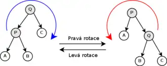 V binárním vyhledávacím stromě je levá rotace pohyb uzlu (P) dolů vlevo. Při této rotaci se očekává, že (P) má pravého potomka (či podstrom). Ten (Q) se stane rodičem uzlu (P) a jeho levý potomek (B) se stane pravým potomkem uzlu (P). Tato rotace se vykonává, aby se vyvážil strom, obzvlášť když má pravý podstrom stromu výrazněji větší hloubku (záleží na typu stromu).