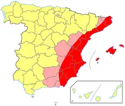 Zahrnuje území Valencijského společenství (provincie Alicante, Castellón a Valencie), Murcie, Katalánska, Kastilie-La Mancha (Albacete a Cuenca), východní Andalusie, Almeríe, Granady, Jaénu, jižní Aragonie a Baleárslých ostrovů.