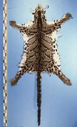 - ↑ CHRISTIANSEN, Per; KITCHENER, Andrew C. A neotype of the clouded leopard (Neofelis nebulosa Griffith 1821). Mammalian Biology - Zeitschrift für Säugetierkunde. 2011-05, roč. 76, čís. 3, s. 325–331. Dostupné online [cit. 2018-08-25]. ISSN 1616-5047. doi:10.1016/j.mambio.2010.05.002.