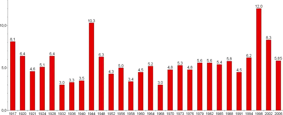 | 1995 | 346 764 | 12,9% | - | 3 | - |