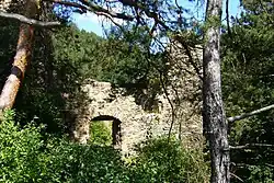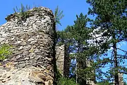 Pozůstatky druhé bašty leží jihovýchodně od hradního jádra. Tvoří je kruhové opevnění s průměrem patnáct metrů. Není jasné, zda bylo opevnění čistě zemní, nebo v jeho středu stála věžovitá stavba. Od opevnění vede směrem k předhradí příkop ohraničený rozpadlými zídkami. Přibližně v polovině příkopu se nachází drobná plošina. Příkop může být zbytkem obléhacích prací, přičemž plošina by v tom případě sloužila k postavení děla. Pravděpodobnější hypotézou je, že příkop je torzem koridoru, který umožňoval spojení bašty s předhradím.[16]
