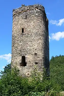 V plné výši se dochovala jen severní věž založená na přitesané skále. Tloušťka jejích stěn dosahuje asi 180 centimetrů. Přízemí věže bývalo nejprve plochostropé, ale později bylo zaklenuto valenou klenbou. Prostor byl temný. Jediným otvorem, který vede skrz jižní zeď, je žlábek, jenž se směrem ven nálevkovitě rozšiřuje. Dobroslava Menclová proto v suti pod věží předpokládala existenci cisterny a otvor ve zdi podle ní umožňoval čerpání vody přímo z interiéru věže. Při pozdně gotických úpravách byla kolem přízemí zřízena krytá pavlač, na kterou se vcházelo nově vylámaným portálem v severní zdi věže.[15]