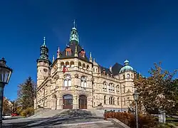 ![]() Liberecká radnice na náměstí Dr. Edvarda Beneše s Neptunovou kašnou | |