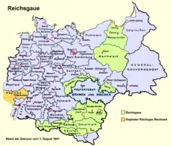 Po Mnichovské dohodě v říjnu 1938 připadly Sudety německé Třetí říši a téměř veškeré české obyvatelstvo muselo odejít do vnitrozemí. Liberec se stal hlavním městem nové sudetské župy (Gauhauptstadt) a sídlem místodržícího. 1. května 1939 připojením předměstských obcí Rochlice, Horní Růžodol, Dolní Hanychov, Janův Důl, Františkov, Růžodol I, Staré a Nové Pavlovice, Ruprechtice, Starý a Nový Harcov vznikl tzv. „Velký Liberec“, ve kterém žilo 70 tisíc obyvatel.[14]