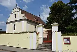 - Kostel Svaté Trojice, někdejší toleranční kostel postavený mezi lety 1788 a 1792 ve stylu selského baroka, nyní v užívání Českobratrské církve evangelické.[18][19] V minulosti se změnil z lutherského na reformovaný. Jeden z citátů z Bible v kostele je v maďarštině, tím zachoval kněz Jan Vég (též Wégh, 1755–1830) památku na rodnou řeč. Kázání psal v latině, do češtiny mu je překládal Václav Matěj Kramerius a kněz je četl. Tak se naučil česky. Později napsal mj. Horlivé a nábožné modlitby křesťanské (Praha 1799) a byl autorem frontispisu (signován Joh. Wégh del.), který rytecky provedl Jan Berka.[20][19] V kostele byl natáčen film podle Vladimíra Körnera Sněžná noc (2009) a film Jan Palach (2018). Jan Palach byl členem zdejšího sboru.