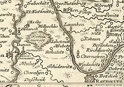 - ↑ Gregorius X. monasterio Doxan confirmat villam Chotsoitz, etiam ecclesia RB II., 333