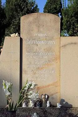 - ↑ Změny na hrobě Popelky Libuše Šafránkové (†68): Tajemství jejího náhrobku! Co tam vysekal kameník?. Blesk.cz [online]. CZECH NEWS CENTER, 2021-07-01 [cit. 2021-07-01]. Dostupné online.