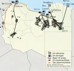- ↑ http://zpravy.idnes.cz/libye-se-boji-sabotazi-ropovodu-kaddafi-z-nich-mohl-vysat-miliardy-dolaru-1lo-/zahranicni.asp?c=A110223_092705_zahranicni_ipl Libye se bojí sabotáží ropovodů. Kaddáfí z nich mohl vysát miliardy dolarů