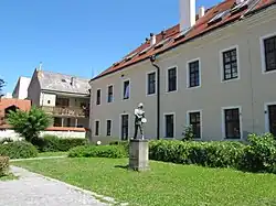 Na nádvoří (společné se sousedními kanovnickými domy) stojí socha Josefa Mánese od Karla Otáhala. Socha z roku 1946 sem byla přesunuta z Milíčová náměstí po zbourání původní budovy ZUŠ. Nádvoří je volně přístupné z Pilařovy ulice, nesoucí jméno historika a piaristy Adolfa Pilaře (1742–1795). Josef Mánes v Kroměříži v době konání Kroměřížského sněmu v letech 1848-1849 maloval řadu portrétů významných účastníků sněmu.