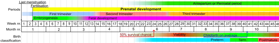 - ↑ Klossner, N. Jayne Introductory Maternity Nursing (2005): "The fetal stage is from the beginning of the 9th week after fertilization and continues until birth"