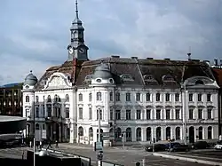 - Budova nemocenské pokladny na ulici Dr.-Neumann-Gasse byla postavena 1930 podle plánů od Johanna Rothmillera a Leopolda Schumma.