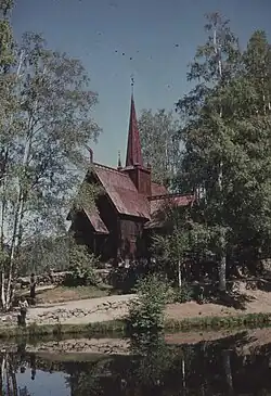 Ve skanzenu Maihaugen se nachází roubený kostel stavkirke. Má půdorys kříže a původně byl postaven v Garmo kolem roku 1200 jako Stavkirke Garmo[17] na území dnešní kommune Lom. Na počátku 20. století byl ale přemístěn do skanzenu Maihaugen a zrekonstruován na muzeum. Při rekonstrukci byla použita většina materiálů z původní budovy kostela.[16]