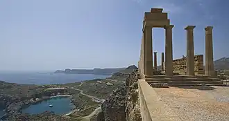 V klasickém období městu vévodil velký chrám Athény Lindské, který získal svou konečnou podobu někdy kolem roku 300 př. n. l. Tato přirozená bašta byla postupně opevňována starověkými Řeky, Římany, Byzantinci, Johanity a osmanskými Turky. Archeologické práce na zdejším nalezišti jsou proto velmi náročné a nálezy se obtížně interpretují.