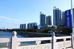 ![]() ![]() ![]() ![]() ![]() Od shora dolů, zleva doprava: 1. pobřeží Ling-šueje 2. zástavba v městském jádru okresu 3. pláž na Hraničním ostrově 4. městys Sin-cchun 5. Opičí ostrov Nan-wan | |