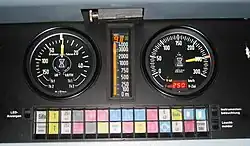 Modulární displej strojvedoucího (MFA) v ICE 2 v režimu LZB. Skutečná, maximální i cílová rychlost je 250 km/h, vzdálenost cíle 9800 m.