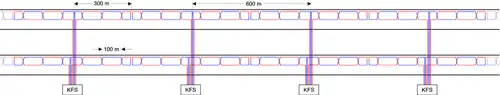 V letech 1987 - 1991 bylo na nově budovaných vysokorychlostních tratích HannoverWürzburg a MannheimStuttgart poprvé použito odlišné uspořádání traťových oddílů. Nepřenosná návěstidla zde kryla pouze místa s kolejovým rozvětvením - nádraží a výhybny, zatímco na širé trati nebyla nainstalována. Mezi těmito místy (Ganzblock, česky mezistaniční oddíl) je trať rozdělena na oddíly (Teilblock) o délce cca 2.500 m bez použití nepřenosných návěstidel. Pokud vlak v režimu LZB vjíždí do mezistaničního oddílu, který ještě není uvolněn, je příslušné nepřenosné návěstidlo zhaslé. Bodové zabezpečovací zařízení (Indusi) je v signalizuje Stůj, avšak vlak v režimu LZB tuto návěst ignoruje.[6]