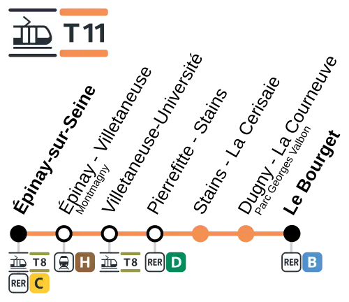 Linka 11 je jednou z linek tramvajové dopravy v regionu Île-de-France a zároveň jednou ze tří linek systému Tram Express. V systému MHD je značena oranžovou barvou, její délka je 11 km, má celkem 7 zastávek a provozuje ji společnost Keolis. Provoz byl zahájen 1. července 2017 po sedmi letech stavebních prací. V roce 2019 linku využilo šest miliónů cestujících.