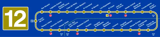 Linka 12 madridského metra je okružní linka, která se nachází mimo vlastní město Madrid na území jeho jižní aglomerace. Spojuje města Alcorcón, Fuenlabradu, Getafe, Leganés a Móstoles. Na lince se nachází 28 stanic a délka linky činí 40,96 km, což je nejvíce v celé madridské síti. Tratě jsou vybudovány jako širokoprofilové a nástupiště mají délku 115 m. Linka byla otevřena jako jeden celek v roce 2003 a od té doby již nebyla rozšiřována. Severní část linky spadá do tarifního pásma B1 (Parque Oeste – Arroyo Culebro), zatímco jižní náleží do pásma B2 (Parque de los Estados – Universidad Rey Juan Carlos). Linka 12 společně s krátkými úseky linek 3, 10 a 11 je označována jako MetroSur („jižní metro“).