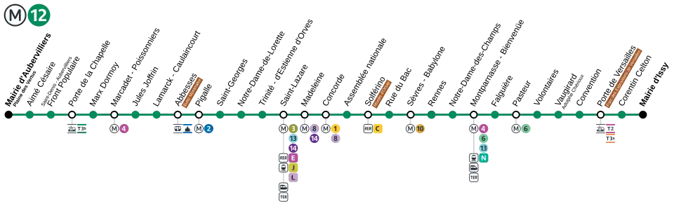 V tomto článku byl použit překlad textu z článku Métrolinie 12 (Paris) na francouzské Wikipedii.