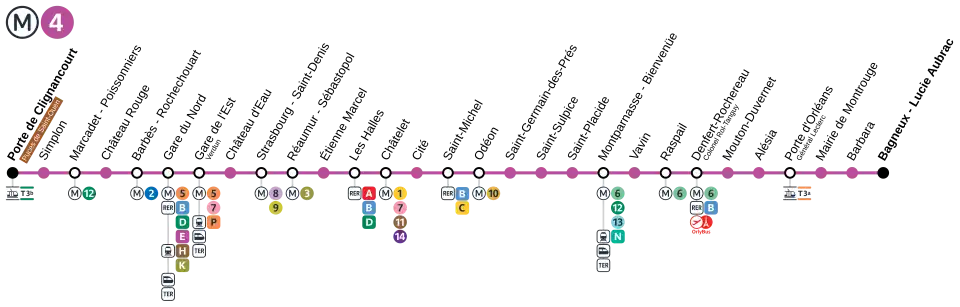 - ↑ a b BERTRAND, Valentin. Paris : après six ans de travaux, le métro 4 est officiellement en pilotage automatique. www.francebleu.fr [online]. France Bleu, 2024-01-19 [cit. 2024-01-21]. Dostupné online. (francouzsky)