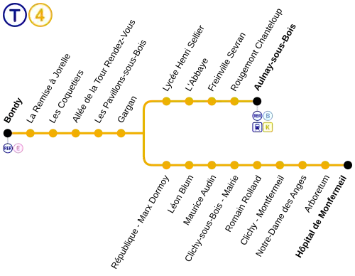 Trať je dlouhá 13,3 km a spojuje města Bondy, Villemomble, Le Raincy, Les Pavillons-sous-Bois, Livry-Gargan, Sevran, Aulnay-sous-Bois, Clichy-sous-Bois a Montfermeil severovýchodně od Paříže v departementu Seine-Saint-Denis. Maximální povolená rychlost je 70 km/h, v městském prostředí je omezená na 50 km/h a na křižovatkách na 30 km/h. V Bondy je možný přestup na linku RER E a v Aulnay-sous-Bois na RER B a Transilien.