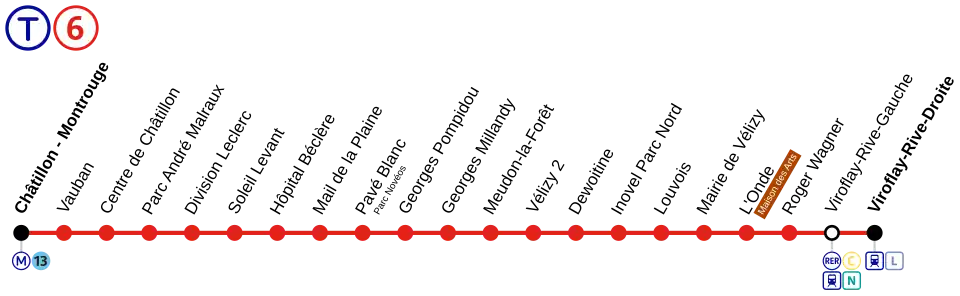 Trať je dlouhá 14 kilometrů a spojuje města Châtillon, Clamart, Fontenay-aux-Roses, Meudon, Vélizy-Villacoublay a Viroflay v departementech Hauts-de-Seine a Yvelines jihozápadně od Paříže. Západní část linky je včetně stanic Viroflay-Rive-Gauche a Viroflay-Rive-Droite podpovrchová. Cesta z konečné na konečnou trvá 40 minut, průměrná vzdálenost mezi zastávkami činí 700 metrů.
