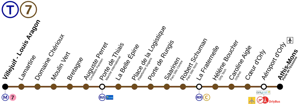 Trať je dlouhá 11,2 kilometrů a spojuje města Villejuif, Vitry-sur-Seine, Chevilly-Larue, Thiais, Rungis, Paray-Vieille-Poste, Orly a Athis-Mons v departementech Val-de-Marne a Essonne jižně od Paříže. Ve stanici Aéroport d'Orly je možný přestup na OrlyVal, který propojuje jednotlivé terminály letiště Paříž-Orly. Mezi stanicemi Athis-Mons a Aéroport d'Orly vede trať v tunelu přímo pod vzletovými a přistávacími dráhami. Cesta z konečné na konečnou trvá 31 minut, průměrná vzdálenost mezi zastávkami činí 657 metrů.