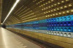 13. Obklady na Áčku, Jiří Benák: OBRAZEM: Mozaiky, plastiky, vitráže. Pražské metro je jako galerie, idnes.cz, 7. 5. 2014