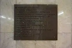 Pamětní deska umístěná ve stanici Dejvická na počest otevření prvního úseku linky A