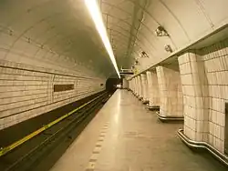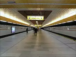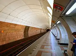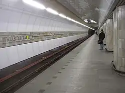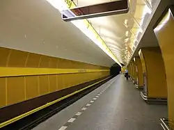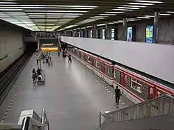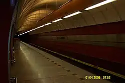 Na lince B je stanice trojlodní, se zvýšenou střední lodí, sloupová. Má 23 párů prostupů. Toto nástupiště je založeno 39 metrů pod zemí, dostatečně hluboko pod nástupištěm pro linku C. Do roku 1990 plnila funkci konečné stanice. Budována byla v letech 1977–1985 vynaloženy byly náklady ve výši 560 milionů Kčs.