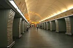 Stanice se začala razit roku 1980, její výstavby se zúčastnili inženýři a architekti z bývalého SSSR (např. Lev Nikolajevič Popov), zatímco pracovníci československého Metrostavu budovali v Moskvě stanici Pražská.
