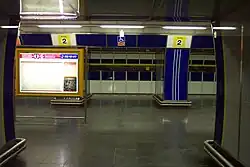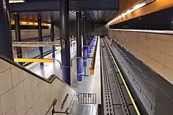 Obklad je ze zelených skleněných tabulí Connex a kovového pruhu s názvem stanice. Na stropě nástupiště byly umístěny speciální lamely, jejichž účelem je tlumit hluk, který způsobují projíždějící vlaky.