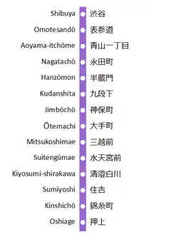 V tomto článku byly použity překlady textů z článků Tokyo Metro Hanzōmon Line na anglické Wikipedii a 東京メトロ半蔵門線 na japonské Wikipedii.