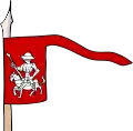 rekonstrukce vojenské korouhve hypoteticky užité v bitvě u Grunwaldu[zdroj?] (1410) se znakem Jagellonců na Vytisově štítu |
