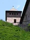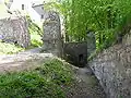 Cestu k hornímu hradu přehrazovaly další dvě brány situované do prosté zdi, jak dosvědčují dochované relikty. Přestavěn a rozšířen byl i horní hrad s obytnými prostory. Tvoří je dva protilehlé paláce, věž a výškově členité nádvoří. K čtverhranné věži, která byla vybudována u severovýchodního nároží jižního paláce až během druhé etapy přestavby hradu, přiléhala další malá stavba, z níž se dochovaly jen skromné zbytky. Východní část jižního dvoupatrového paláce (původně zřejmě třípatrového), v němž byly vzhledem k jeho bezpečnější poloze patrně umístěny reprezentativnější obytné místnosti a jehož některé prostory byly zaklenuty žebrovými klenbami, tvoří vstupní průjezd do nádvoří horního hradu. Vstup do paláce byl vybudován teprve ve výši prvního patra, o čemž svědčí dochovaný vstupní portál. První a druhé patro paláce bylo zřejmě zaklenuto, jak svědčí dochované relikty klenebního systému. Věž, členěná do pěti podlaží, byla zakončena nad pátým patrem dřevěným obranným ochozem a stanovou nebo vysokou valbovou střechou. Místnosti ve třetím a pátém podlaží jsou zaklenuty dochovanou žebrovou klenbou. Přístup do věže byl možný v jejím druhém, třetím a čtvrtém podlaží po dřevěných pavlačích, vedených z paláce. Alespoň tomu by nasvědčovaly větší otvory s gotickým ostěním na západní straně věže. Severní palác, z něhož se dodnes dochovala jen severní zeď a z části i boční a příčné zdi, sloužil jako obydlí pro služební personál a správu hradu a panství.[25]