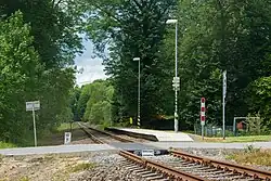 U zastávky směrem k odbočce Moravice se v km 15,892 nachází přejezd P7841 zabezpečený výstražnými kříži, na kterém trať kříží silnice IIII/44331 z Litultovic do Lhotky u Litultovic.[2]